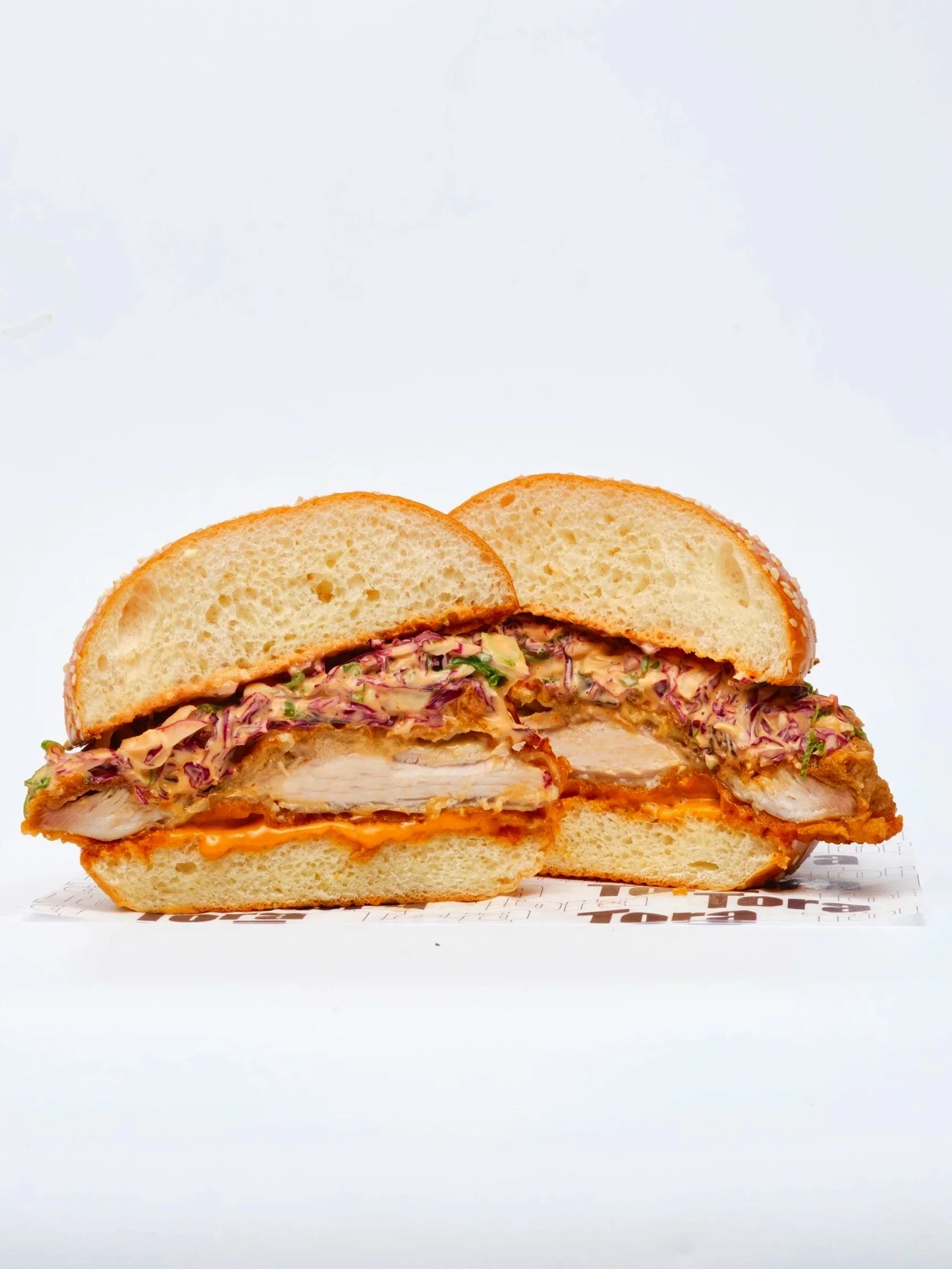 Shredded Cabbage, Coriander, Tora Hot Sauce & Brioche Bun
