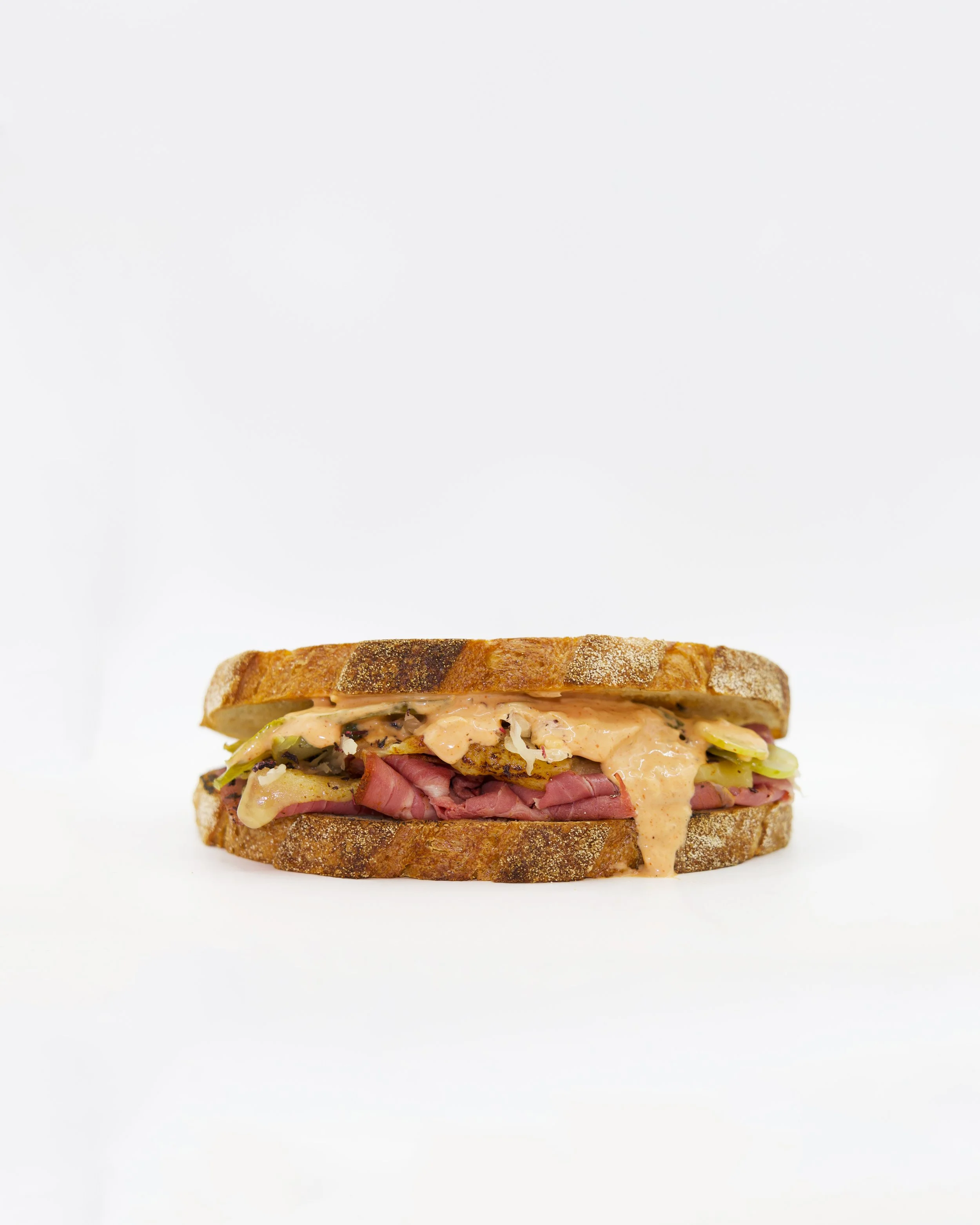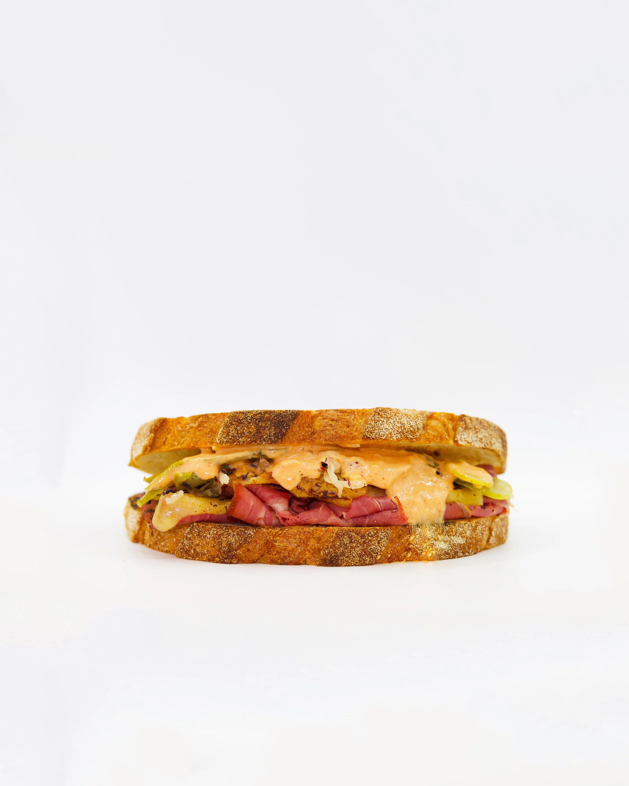 Sliced Pastrami,Pickles, Sauerkraut, Swiss Cheese, Smoky Mayo & Mustard